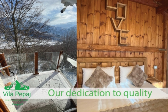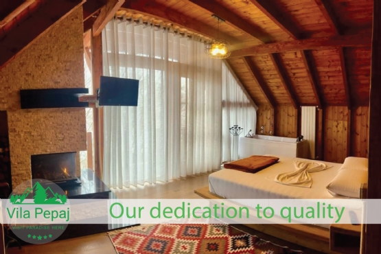 - Vila është e ndërtuar dhe e areduar tërësisht nga druri, që mysafirët tanë të ndihen sa më afër natyrës dhe të shijojnë një kënaqësi dhe rehati që mund të gjejnë vetëm brenda një vile nga druri e ngritur brenda një pylli.