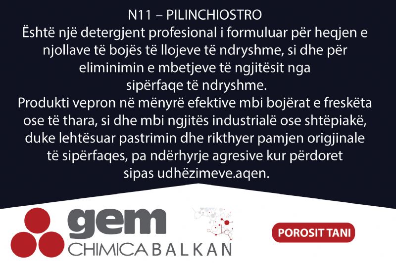 Detergjent per heqjen e bojes dhe ngjitesit N11 – PILINCHIOSTRO nga Gem Chimica Balkan, pastrues per njolla boje, detergjent per heqje boje nga siperfaqe, pastrues per ngjites, produkt per pastrim bojerash industriale, detergjent per boje